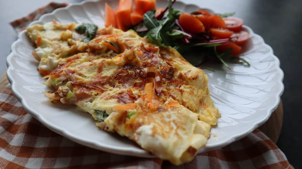 Recept – Omelett med skinka, ost och grönsaker.