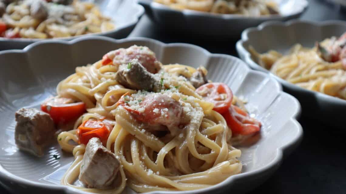 Pasta med skinksås är en superlätt vardagsmaträtt. Skinksåsen är så enkel och snabb att laga. Kräver inga speciella förberedelser utan är bara att slänga ihop. Snabb och smidig vardagsmat när man inte hinner stå så länge i köket. Recept - Pasta med skinksås, ca 4 pers Skinksås 500 gram rökt Skinka 4 dl Kelda pastasås mild ost 120 g frysta Ärtor 1/2 Purjolök 1/2 tsk Salt 2 krm Svartpeppar 1 msk Smör Pasta 250 gram okokt pasta, exempelvis Fusili. Gör så här: Koka pastan enligt anvisning på förpackningen. Skiva och dela rökt skinka och purjolök i önskad storlek. Stek skinka och purjolök på medelhög värme tillsammans med smör i en…