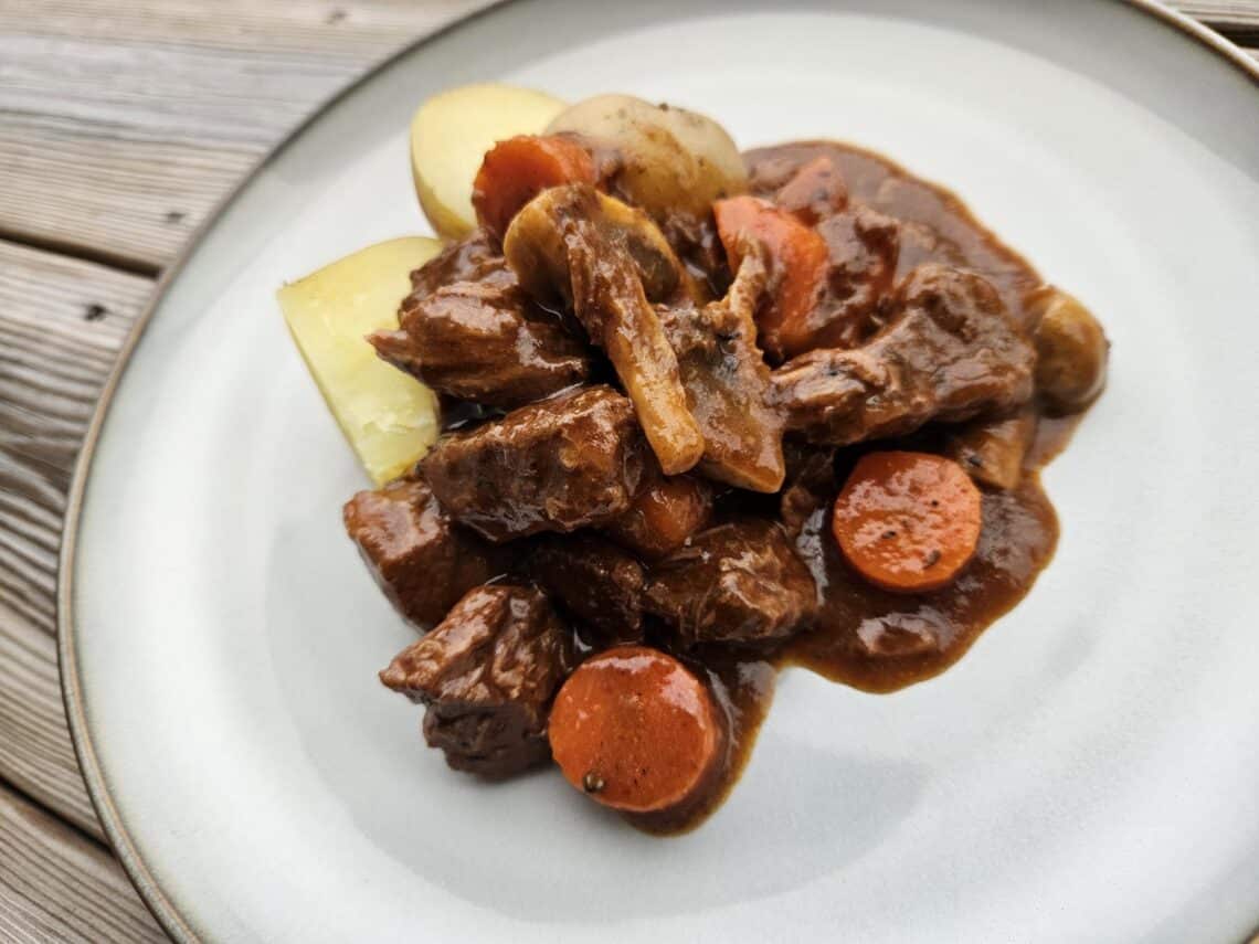 En klassisk köttgryta håller alltid, både i matlådan och att bjuda på. Jag har valt att göra den på fransyska men det går lika bra med någon annan köttdetalj av nöt om så önskas. Genom att tillsätta rotfrukterna på slutet får vi på så vis en variation av texturer och bevarar även näringen i moroten. Recept - Köttgryta på nötkött, ca 6 pers. Ingredienser: 1 kg Tärnat nötkött 2 msk Smör & Rapsolja 1 st Gul lök 1 tsk Vitlökspulver (alt. 2 pressade vitlöksklyftor) 2 tsk Torkad timjan 2 st Lagerblad 2 dl Rödvin 1 l Vatten 3 msk Köttfond 150 g Champinjoner 2 st Morötter Salt Svartpeppar Tillbehör…