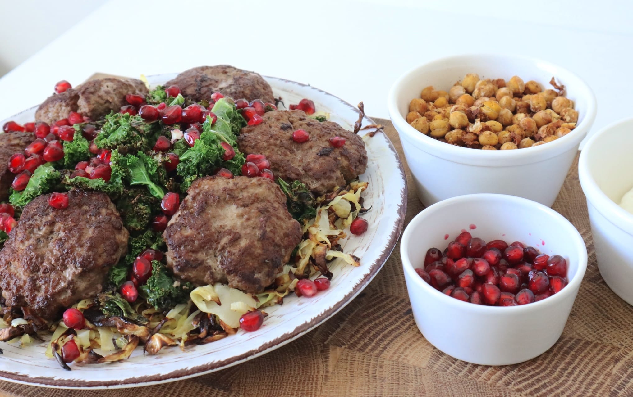 Mjukt, crispigt och crunchy på en tallrik med bara sex ingredienser. Vid en första anblick av detta recept kan det upplevas som lite knivigt, men "you're in for a treat". Detta recept innehåller "bara" sex ingredienser samt lite olja/smör och kryddor. Smidigt, enkelt och framförallt - fantastiskt gott! Recept Nötbiffsallad, 4 pers Nötbiff 600 g nötfärs 1 msk smör till stekning Salt och peppar efter smak Sallad Spetskål 600g/1 st spetskål 2 msk olivolja Salt och peppar efter smak Grönkål 200 g grönkål 1 msk smör till stekning En nya salt 1 st granatäpple Spicy kikärtor 1 burk avrunna kikärtor 1-2 krm chilipulver 1-2 krm cayennepulver En nypa salt Yoghurtsås 2…