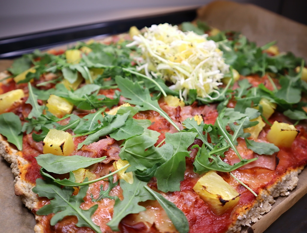 Recept – Hembakt pizza på havremjöl med pizzasallad