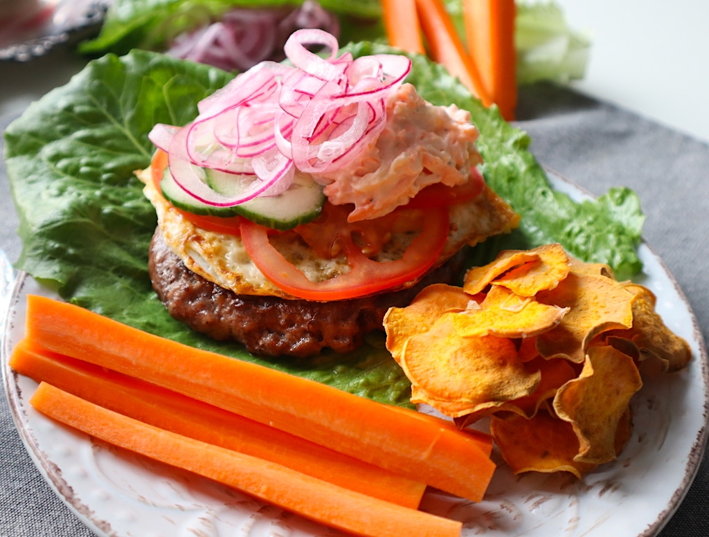 Recept – Hamburgare med sötpotatischips & coleslaw