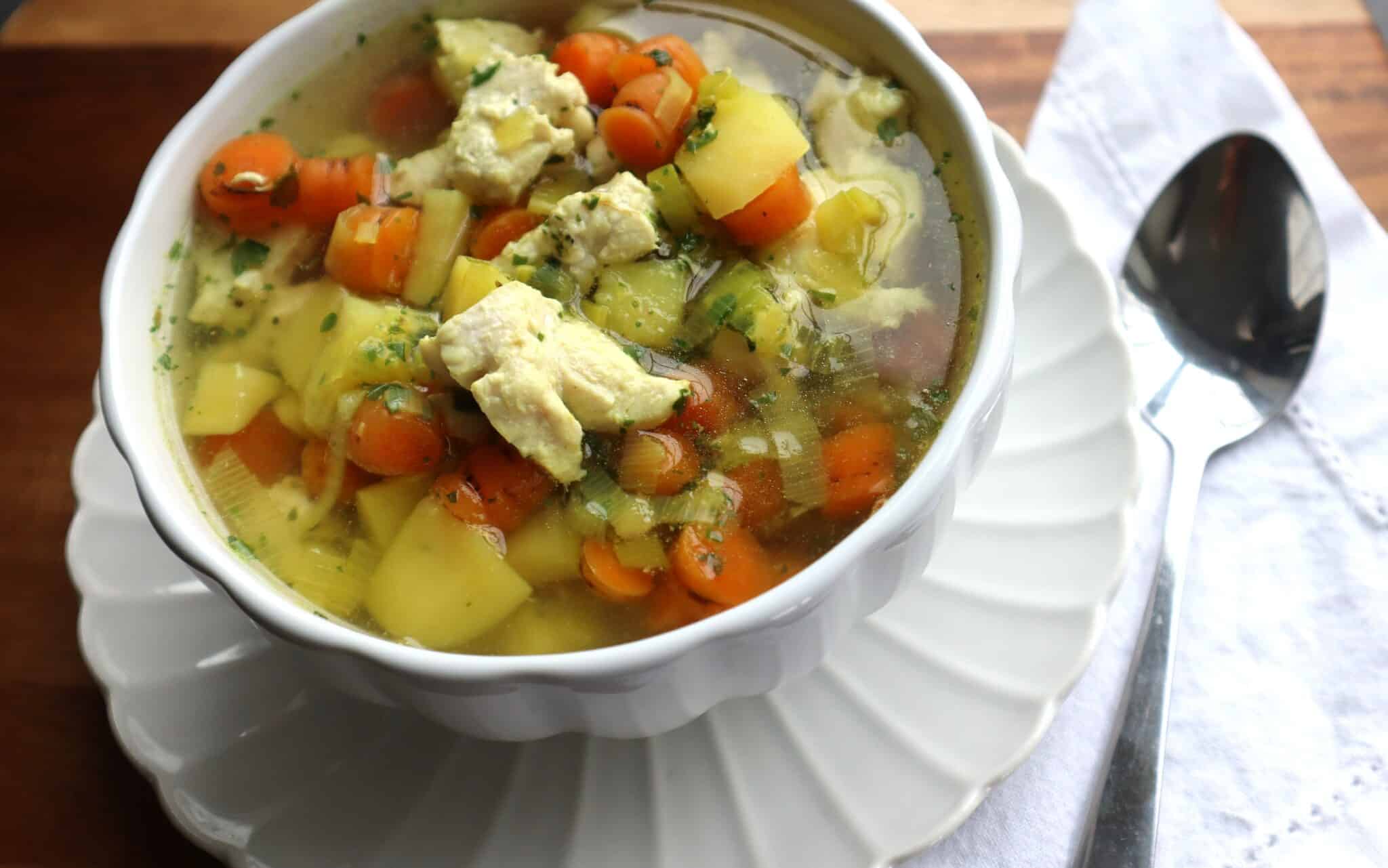 En superenkel kycklingsoppa. Denna kycklingsoppa är verkligen en snabblagad och enkel maträtt som passar perfekt till vardags och till matlådan dagen efter. Recept - Kycklingsoppa, ca 4 pers Kycklingsoppa 500 g Kycklingfilé 300 g Morot 150 g Purjolök 500 g Potatis 3 st tärningar Hönsbuljong 3 msk fryst Persilja hackad 1/2 tsk Salt 1 krm Svartpeppar Gör såhär: Skala och hacka potatis, morot och purjolök i ca 1 cm stora tärningar. Lägg grönsakerna i en gryta med vatten som täcker lite ovanför grönsakerna. Smula i Hönsbuljongtärningarna, salt och svartpeppar. Skär kycklingen i önskade bitar och tillsätt i grytan. Koka sakta i ca 10 minuter, eller tills potatisen och morötterna blivit…