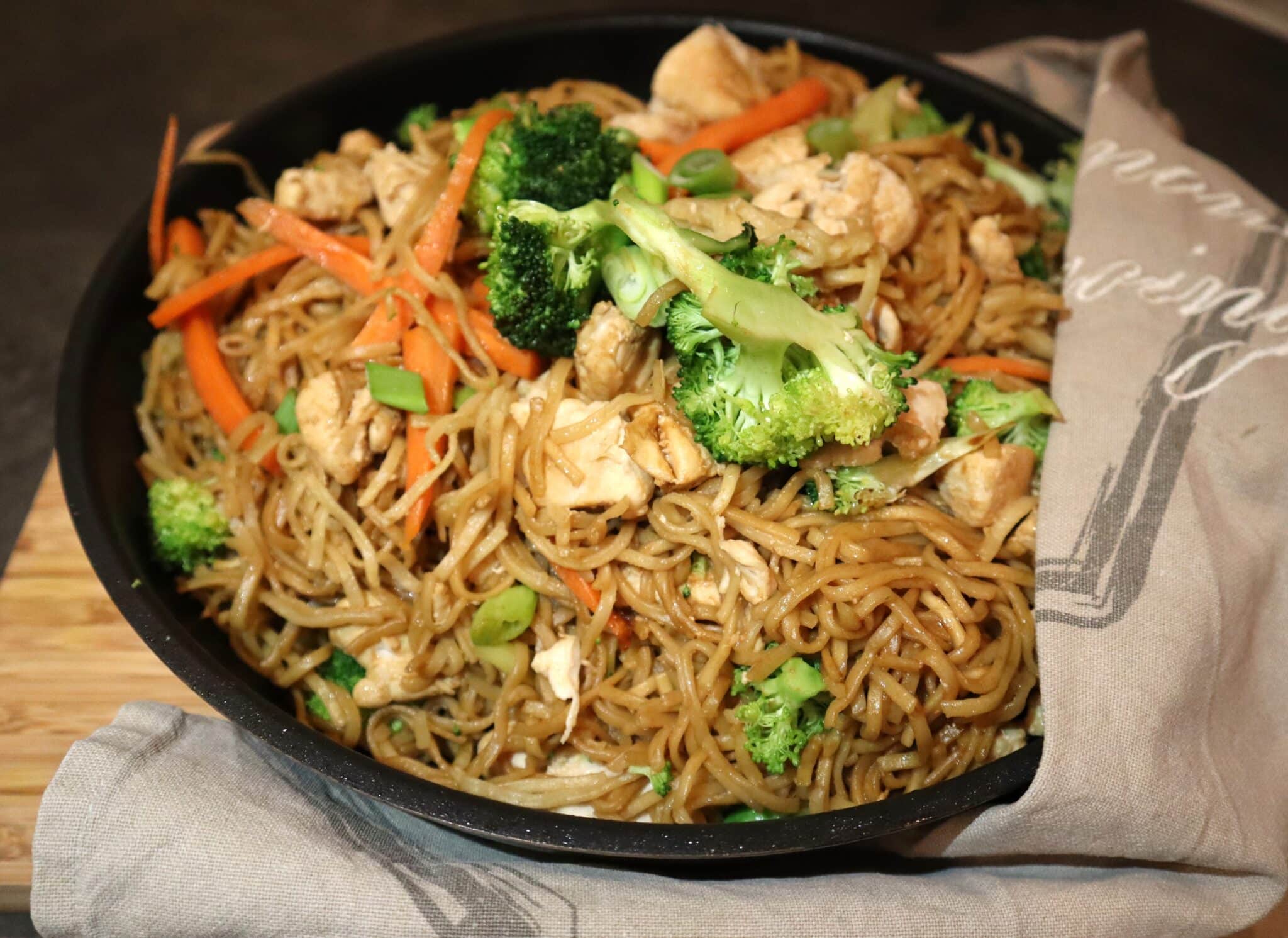 Kyckling med nudlar och grönsaker är en snabblagad vardagsmaträtt. Denna maträtt är otroligt lättlagad och kräver små förberedelser. Recept - Kyckling med nudlar, ca 4 pers Kyckling med nudlar 250 g Äggnudlar 400 g strimlad kycklingfilé 2 msk Vegetabilisk olja 6 st Salladslökar ca 70 g Broccoli ca 160 g Morot 100 g Hoisinsås 1 msk Sesamolja Gör så här: Koka äggnudlarna enligt anvisningarna på förpackningen. Strimla kyckling och stek i en het panna tillsammans med hälften av den vegetabiliska oljan. Skala och skär morötterna i mindre bitar, förslagsvis i tunnare stavar. Skölj och skär broccolin i mindre buketter. Skölj och strimla salladslöken snett. Fräs morötter, broccoli och salladslöken i…