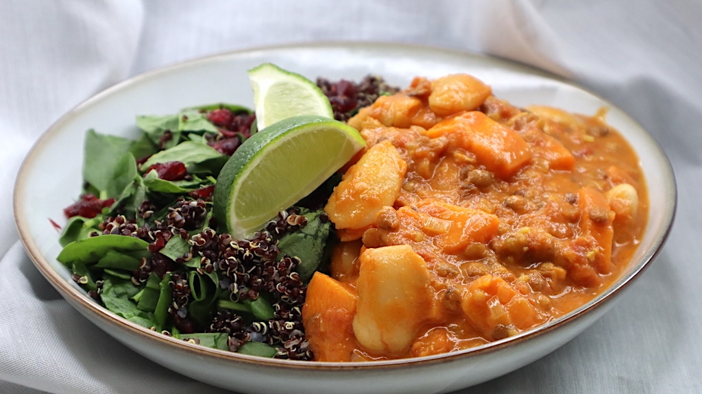 Recept – Vegetarisk linsgryta med yoghurtsås