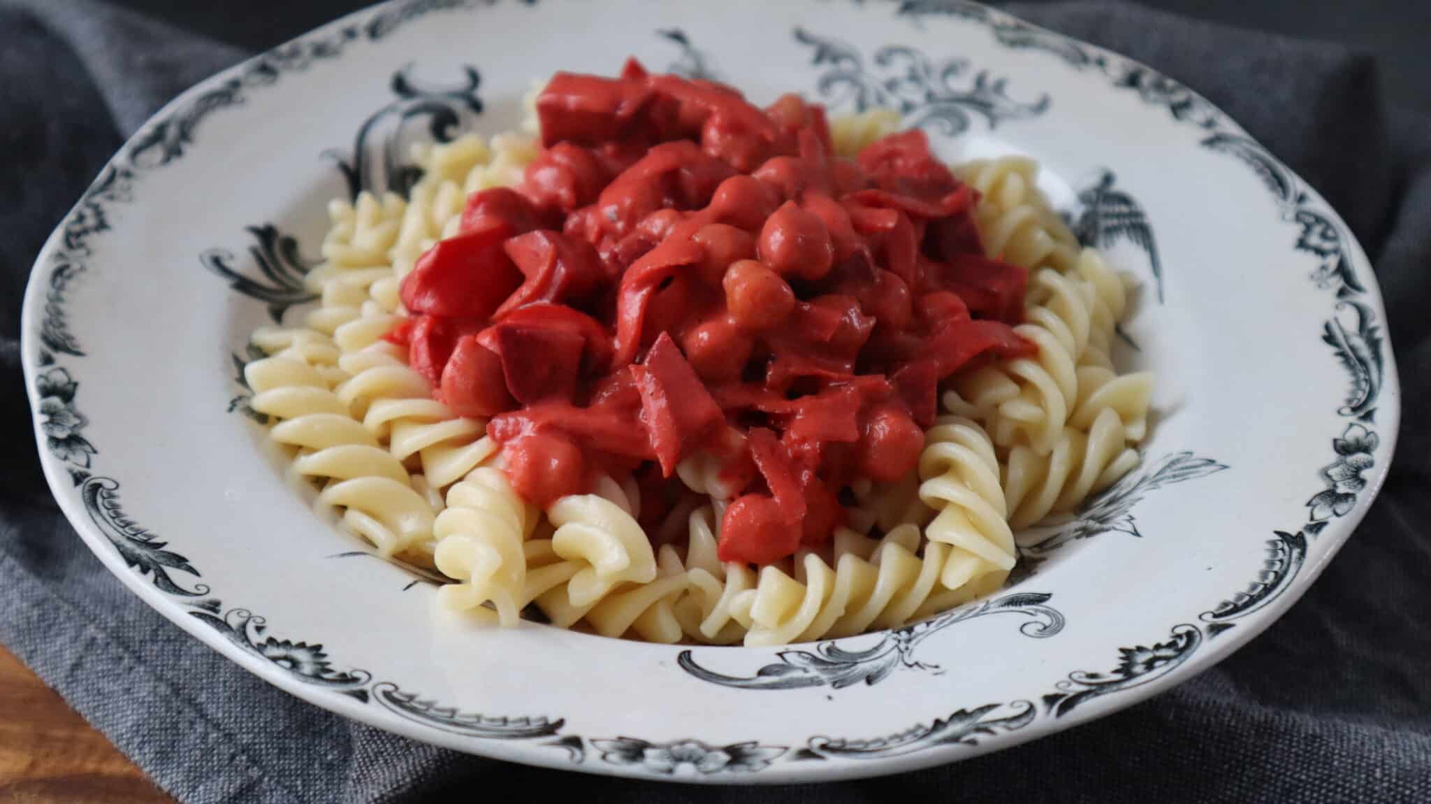 En färgglad kikärtsgryta med rödbetor. Denna vegetariska kikärtsgryta är otroligt lättlagad, kräver små förberedelser och går snabbt att tillaga. Recept - Kikärtsgryta med rödbetor, ca 4 pers Kikärtsgryta med rödbetor 2 st Morötter 1 st Röd paprika 300g Rödbeta 1 msk Smör eller olja 1/2 tsk salt 1 krm vitpeppar 400 g Passerade tomater 4 dl Milda mat 4% 1 dl Lättmjölk 1 msk Grönsaksfond 400 g Kikärtor (Färdigkokta) Pasta 240 g okokt pasta, fusilli. Gör så här: Koka pasta enligt anvisningarna på förpackningen. Skala och hacka rödbeta, morot och paprika. Stek grönsakerna tillsammans med smör eller olja i en het stekpanna. Tillsätt passerade tomater, milda mat, lättmjölk, grönsaksfond, salt…