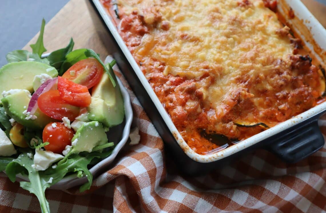 Denna zucchinilasagne med röda linser är otroligt smakrik, mättande och god. Zucchinilasagnen kräver lite förberedelser med tillagas sedan enkelt i ugnen. Recept - Zucchinilasagne, ca 4 portioner. Zucchinilasagne 2 dl Röda linser 3 st Vitlöksklyftor 2 st Morötter (ca 150g) 800 g Krossade tomater 1 msk Samal oelek 1 st Zucchini (ca 300g) 10 st Lasagneplattor 500 g Cottage cheese mini 250 g Körsbärstomater 2 dl Milda mat 4% eller havregrädde 50 g Mager riven ost 12% 1 msk Olivolja 1 tsk Salt 1 tsk Svartpeppar Gör så här: Sätt på ugnen på 175 grader. Skala och hacka vitlök. Riv morot grovt. Stek vitlök i en gryta/stekpanna tillsammans med olivolja.…